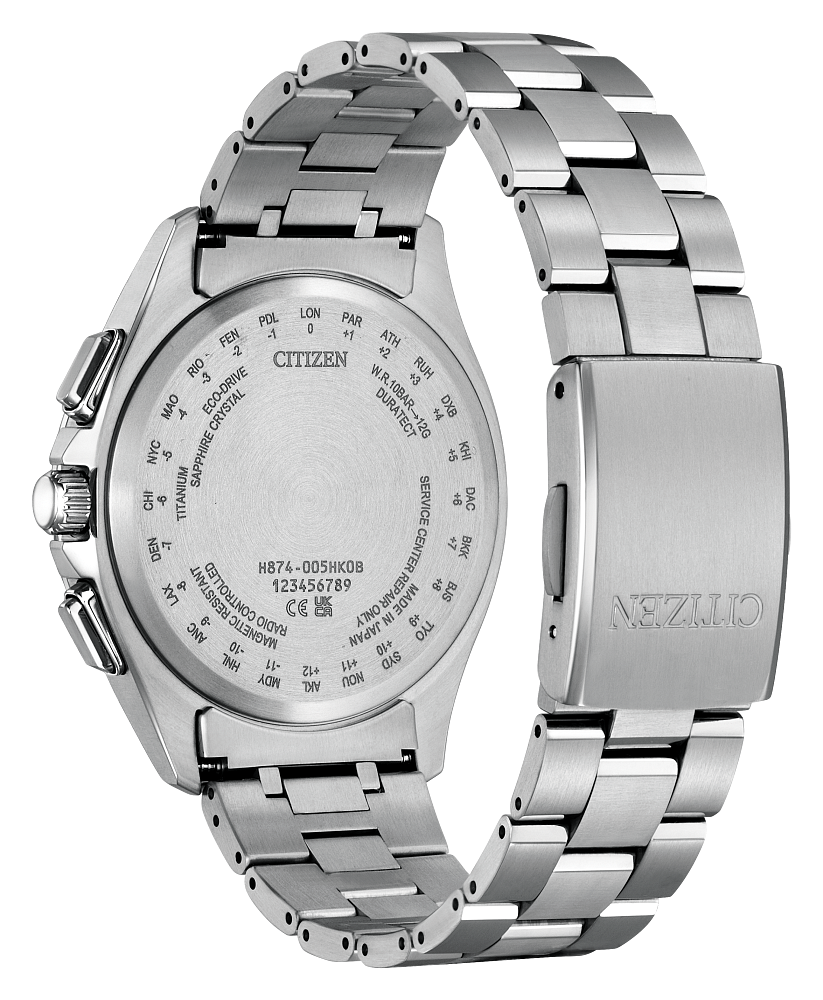 Powerful design and advanced technology drive the luxury ATTESA. Since its 1987 launch, ATTESA has incorporated titanium-processing know-how and features innovative, world-first technologies that will continue to shape the future. This latest model, the limited-edition ATTESA H874 Stained Glass, marks a unique take on the elevated luxury sports style. A case design recalling the earliest models in the series quickly catches the eye, with its 41.5mm sizing in scratch-and corrosion-resistant Super Titanium™ alongside a matching triple-link bracelet solidifying the lightweight, durable construction of the timepiece. On the special edition dial, hues of purple, blue, and black take inspiration from a stained glass window, together providing for a display that’s as handsome as it is legible. In addition to its running time, the watch features a moon phase display, world time in 24 time zones, a perpetual calendar, and day-date functionality. Sustainably powered by our proprietary Eco-Drive technology to provide light-powered vitality without ever needing a battery. Water resistant up to 100 metres. Calibre H874. Limited to 2,200 unnumbered pieces worldwide.