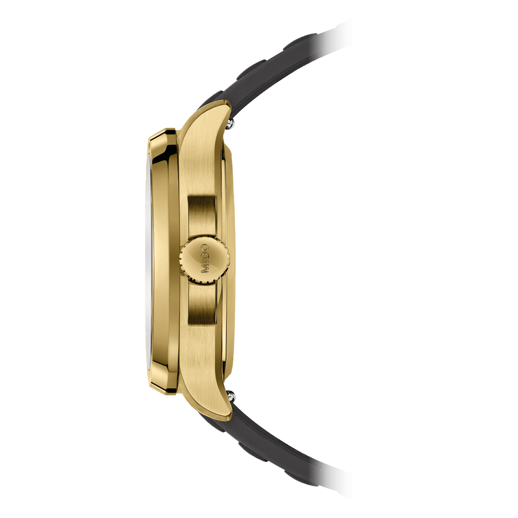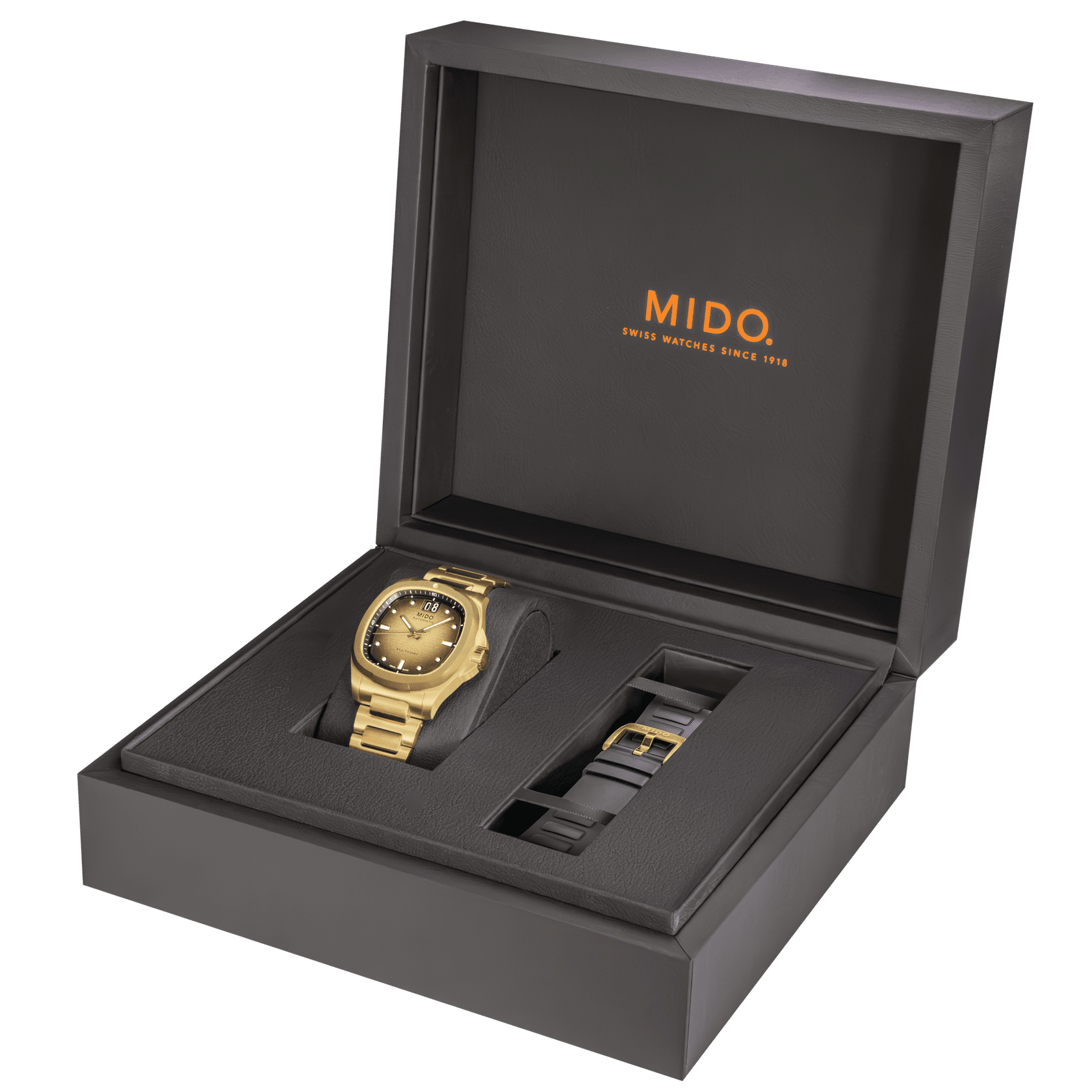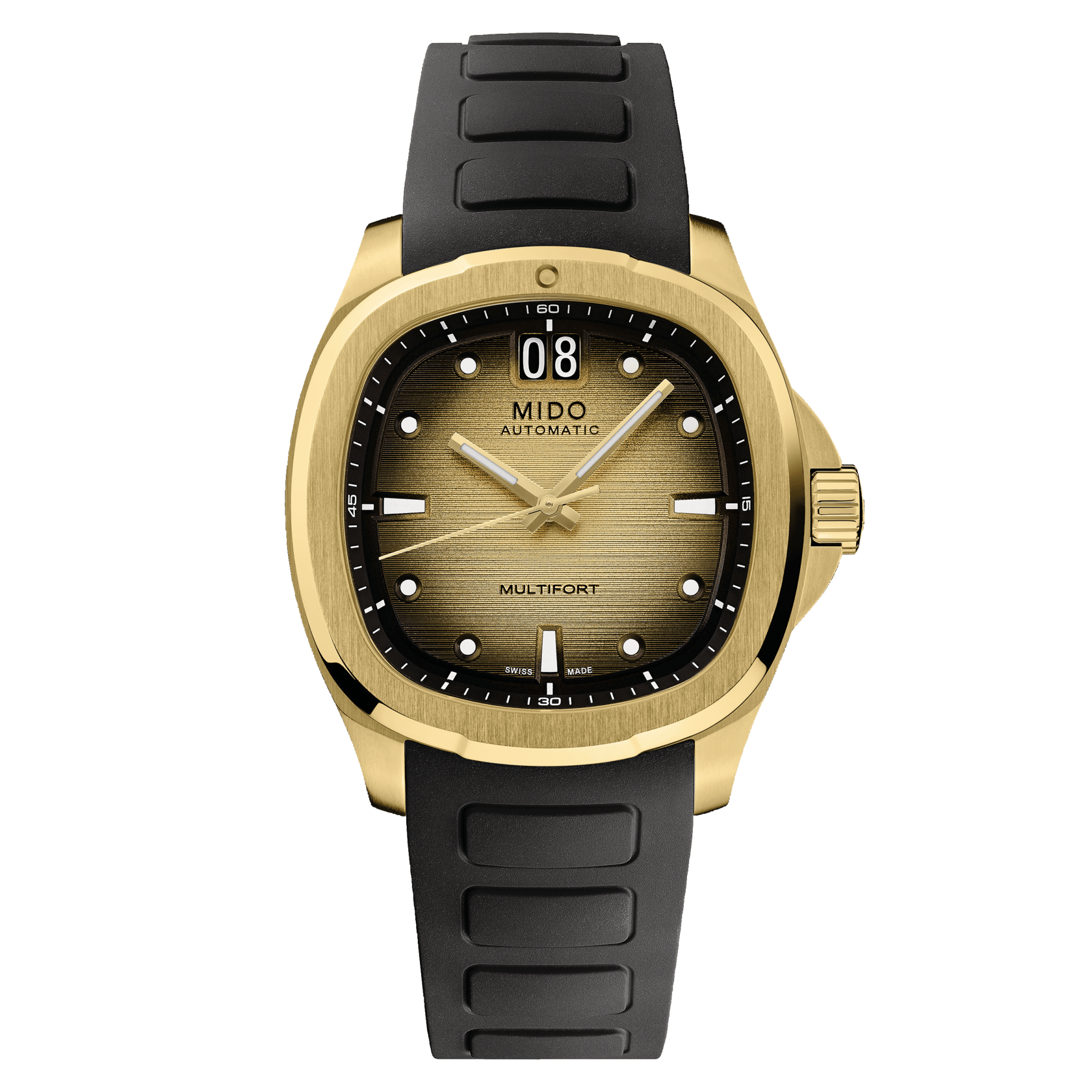 A brilliant flashback! Born from MIDO's extraordinary heritage, the TV-shaped case returns to the centre stage for the Multifort TV Big Date, as intense as it is precise, thanks to its formidable mechanical movement. The modern and dynamic design of this Swiss watch is underlined by a striking horizontal brushed finish dial and, along wtih its distinctive function: the BIG DATE at 12 o'clock. Its formidable latest-generation automatic movement, Calibre 80 is equipped with a high-tech balance spring in Nivachron™ which offers outstanding resistance to shocks and magnetic fields.