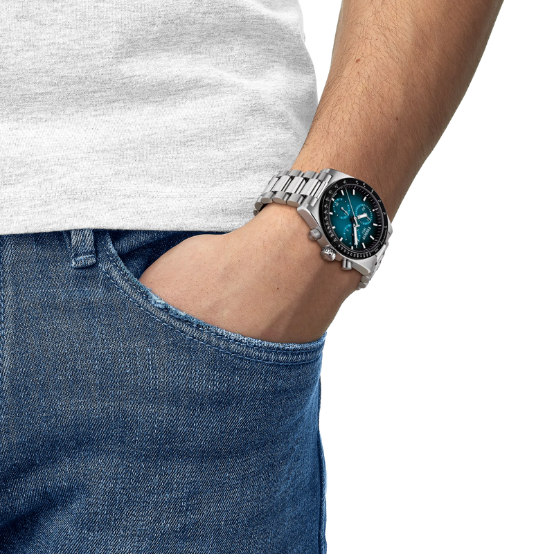 The Tissot PR516 Chronograph Quartz: a contemporary take on a cherished 1970 design. This watch showcases a sleek 40mm stainless-steel case and a dynamic dial, embodying the spirit of speed and precision. Equipped with the Quartz G10.212 movement, it offers unmatched accuracy for the active lifestyle. The bezel features a practical tachymeter, while Super-LumiNova®️-coated indices ensure visibility in all conditions. Its versatile design is complemented by a domed stainless-steel bracelet with a quick interchangeable system, perfect for transitioning from business meetings to casual outings. The PR516 Chronograph Quartz is a modern classic, blending with Tissot's rich heritage.