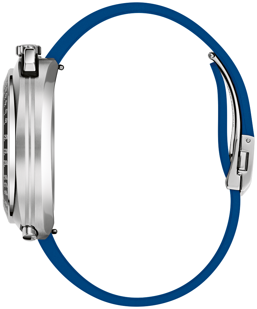 Experience the thrill of speed, right on your wrist. As part of a new collaboration for Bulova’s 150th Anniversary, the new limited-edition Bulova Racing Chronograph combines legendary muscle car customizer Carroll Shelby’s trailblazing racing style with Bulova’s innovative watchmaking technology. Shelby’s signature blue and white colourway is on full display, striping the rubber strap, accenting the dial, and elevating the 43mm silver-tone stainless steel case. Inspired by the massive power of the 1967 Shelby Ford Mustang GT5000, the angular bullhead case offers a dramatic presence on the wrist, recalling the aerodynamic lines of that iconic car and including a black tachymeter ring, sapphire crystal, 12 o’clock crown and pushers, and a grooved mid-case echoing the car’s racing stripes. With the Shelby Cobra logo nestled in the 3 o’clock register, the dial roars to life with 8-hand chronograph functionality including timing to an astonishing 1/1000 second, powered by Bulova’s proprietary high precision quartz Precisionist movement , resonating at a frequency of 262khz for unparalleled accuracy and allowing a sweeping chronograph hand. With an individually numbered polished case back bearing Shelby’s signature and delivered in a limited-edition box with a 1:24 die-cast model of the GT500, the new Racing Chronograph brings the power of Shelby’s creations to your wrist for unparalleled style. Limited to 7,500 pieces worldwide.