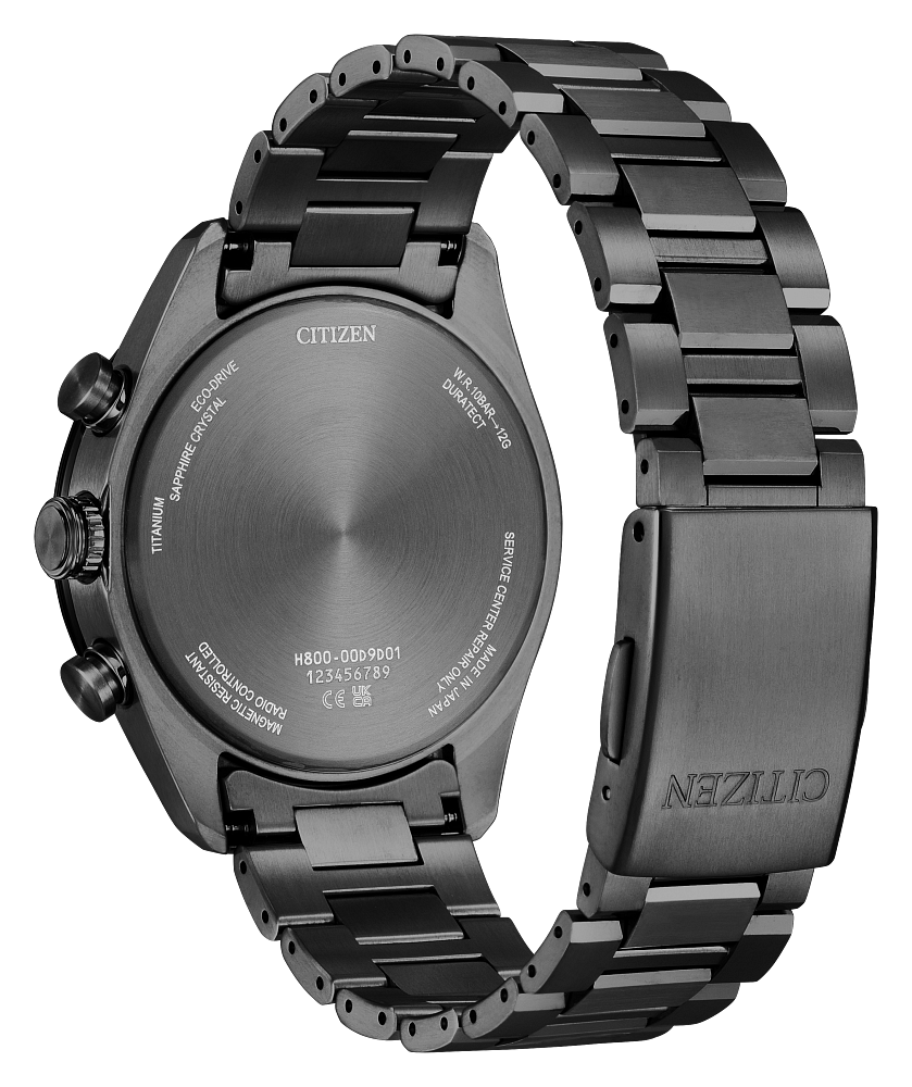 Innovative technology once again meets elevated chronograph styling in our latest: the ATTESA H800 Ring Sapphire Bezel. A 42mm Super Titanium™ case in dark grey DLC solidifies the lightweight, durable construction of the timepiece that is also scratch- and corrosion-resistant, with a triple-link bracelet securing the watch to the wrist. A black-toned signature crown and modern chronograph pushers add a sporty touch, while a world-time bezel, also in black, provides travel-ready functionality.