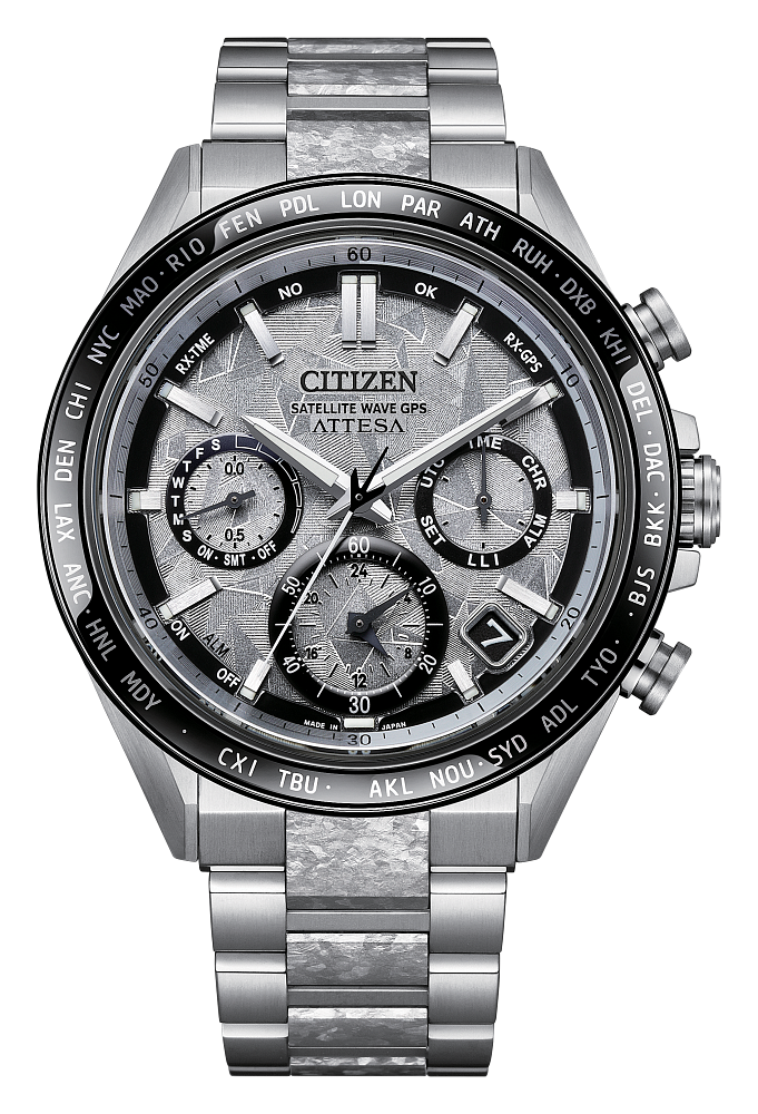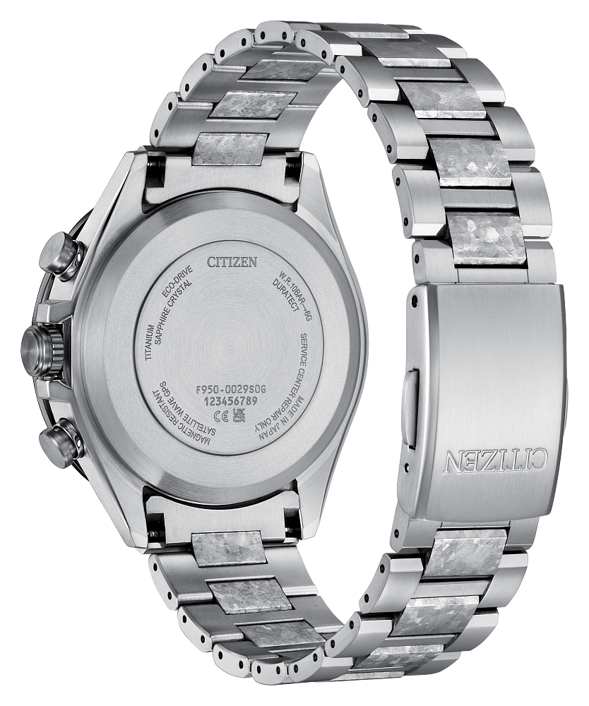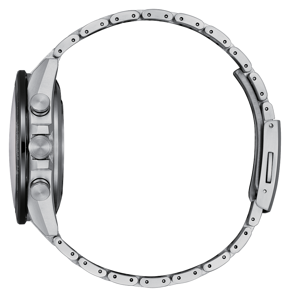 This ATTESA features the most advanced movement for Eco-Drive Satellite Wave GPS watches and delivers the world’s fastest time-only signal reception in as little as 3 seconds. Other advanced features include world time in 27 cities (40 time zones), a chronograph, dual time zones, (UTC) universal coordinated time display, a perpetual calendar, as well as daylight savings time, and power reserve and light level indicators. This distinctive chronograph utilizes our proprietary Eco-Drive technology that’s sustainably powered by any light and never needs a battery. Water resistant up to 100 metres. Calibre F950.