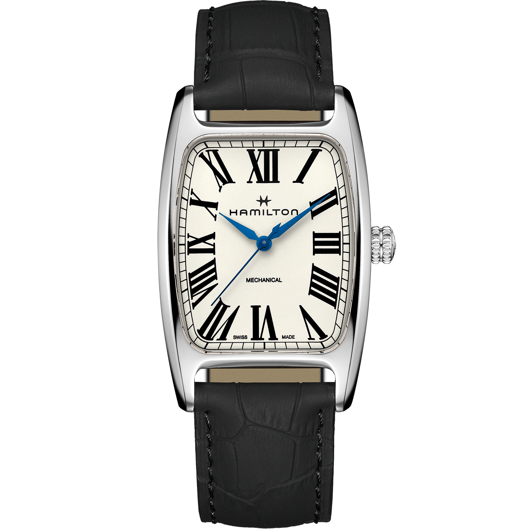 Art Deco meets American Classic style in the new Hamilton Boulton Mechanical. With its distinctive case shape, the Boulton has been a mainstay of the Hamilton collection since it first appeared in 1940. Reimagined for the twenty-first century and powered by the awesome H-50 handwinding movement, it proves that the Hamilton American Classic look never goes out of style.